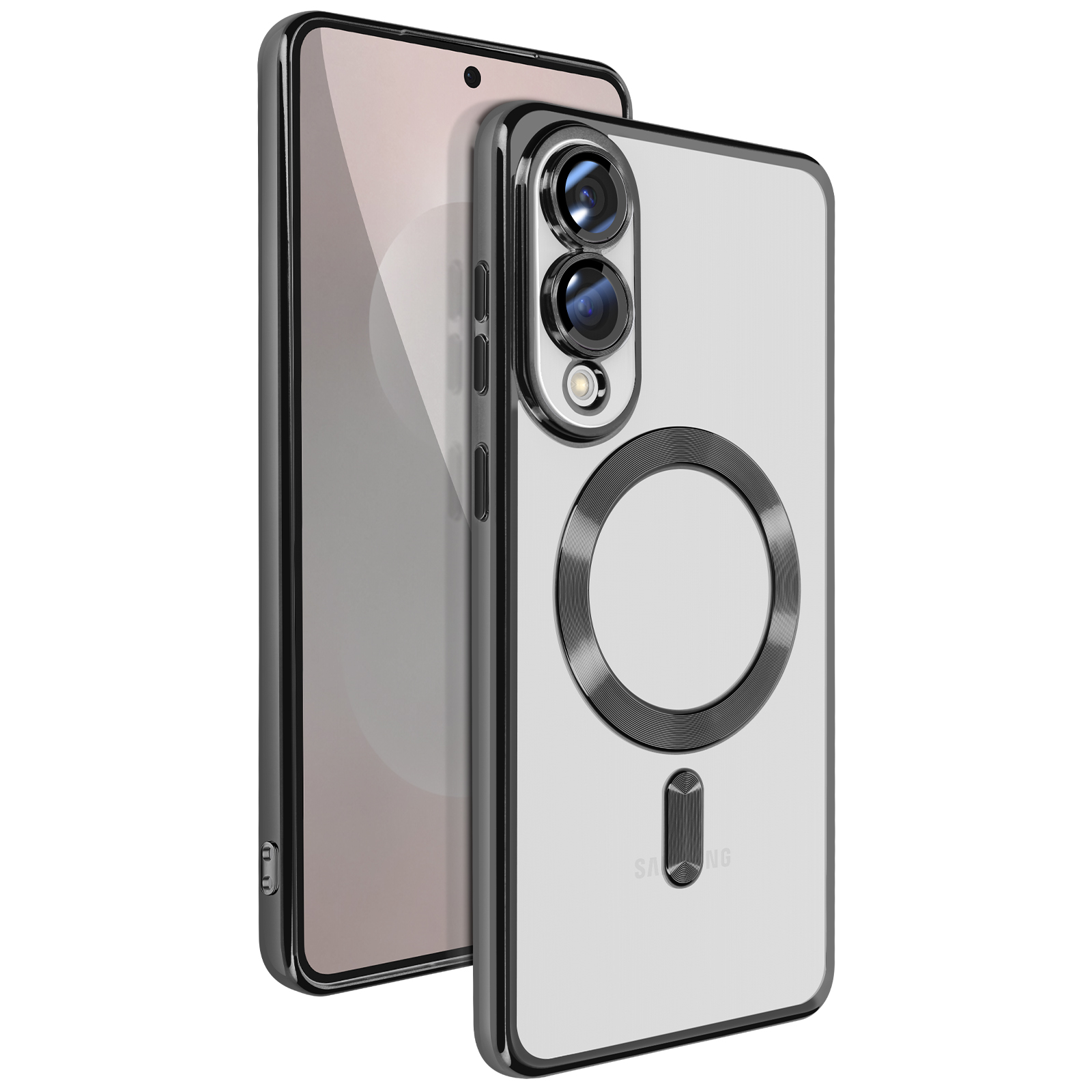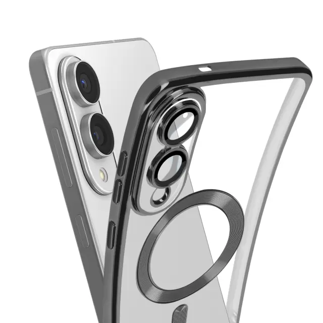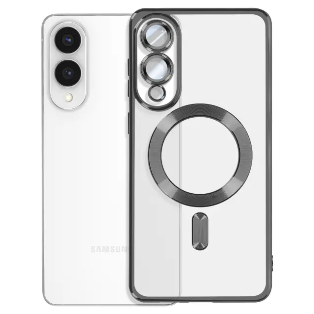 Ohišje MagSafe za Samsung Galaxy S25 Edge Silikonski kromirani okvir, Črna