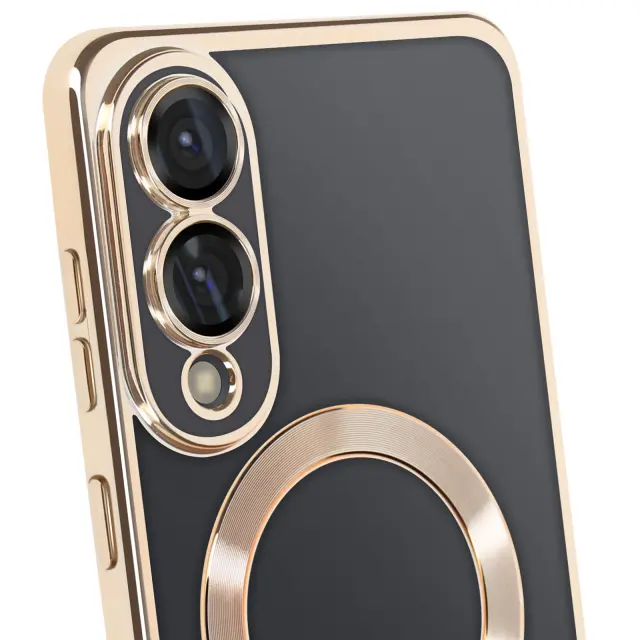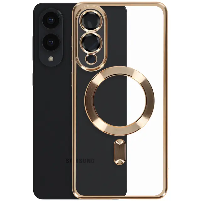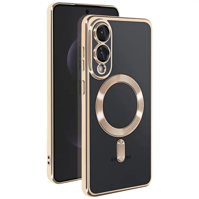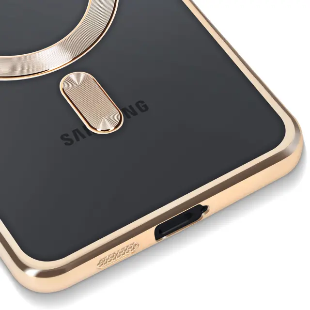 Ohišje MagSafe za Samsung Galaxy S25 Edge Silikonski kromirani okvir, Zlata