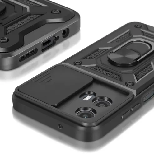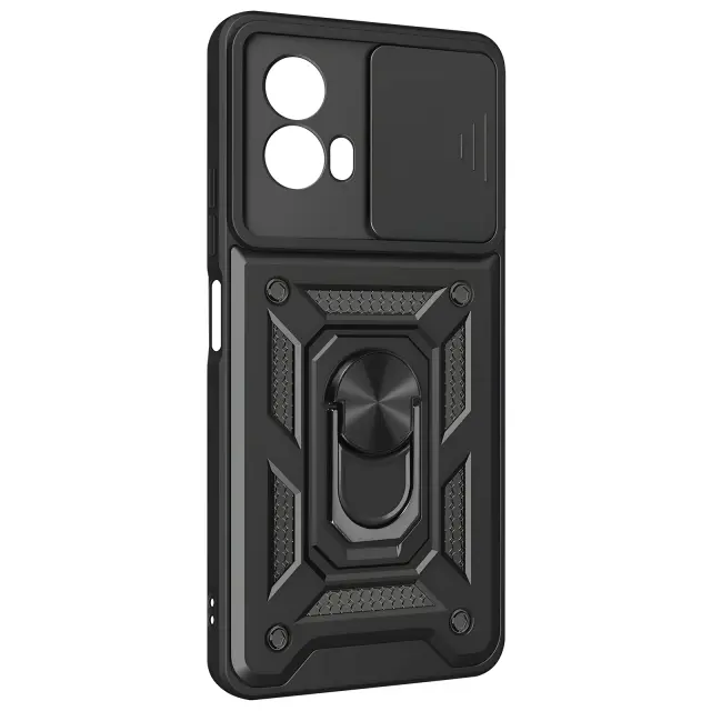 Ohišje s prstanom za Motorola Moto G34 5G Zaščita pred udarci s pokrovom kamere, Črna