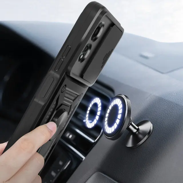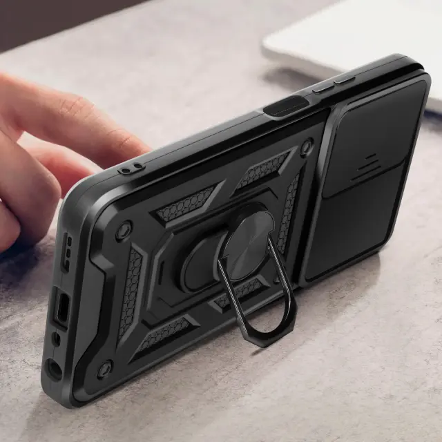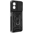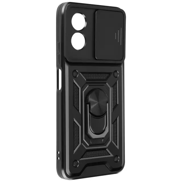 Ohišje s prstanom za Oppo A38 Zaščita pred udarci z drsno zaščito kamere, Črna