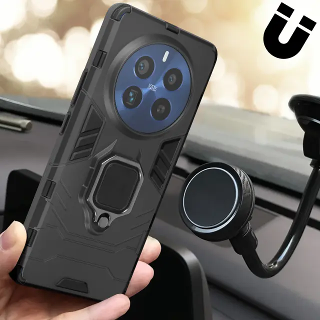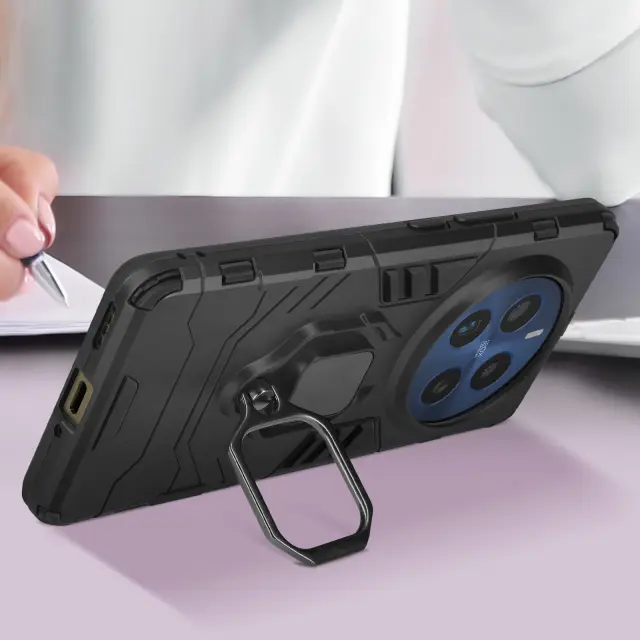 Ohišje s prstanom za Realme 12 Pro , 12 Pro Plus 5G Odporna zaščita pred udarci iz biomaterialov, Črna