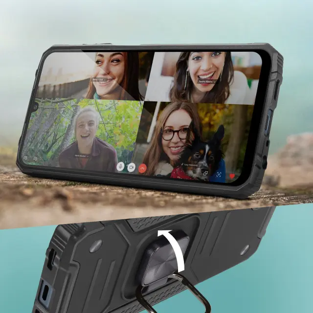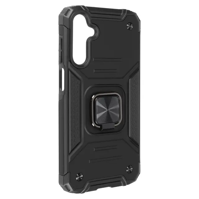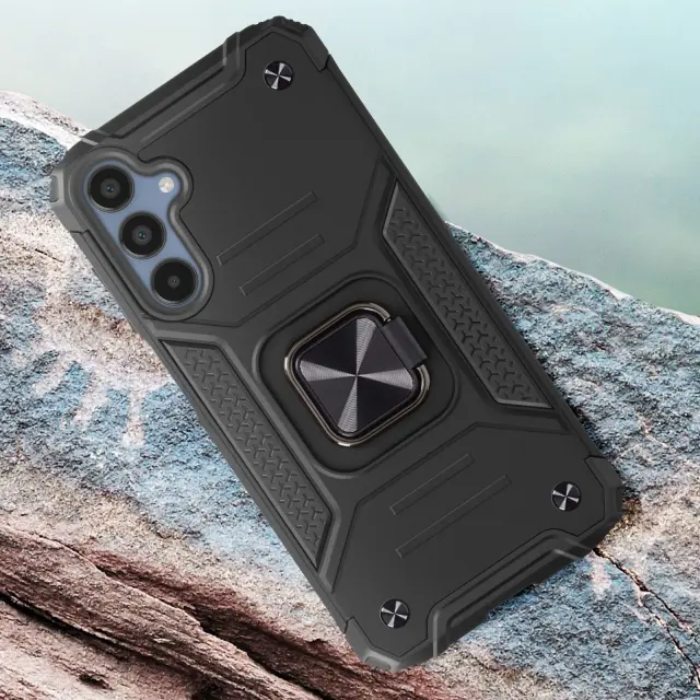Ohišje s prstanom za Samsung A15 5G Ojačan bi-material Večnamenski obroč, Črna