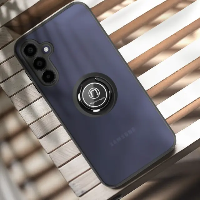 Ohišje s prstanom za Samsung Galaxy A15 Podporni obroč Podpora, Črna