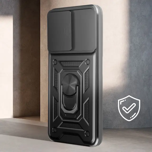 Ohišje s prstanom za Samsung Galaxy A35 5G Zaščita pred udarci z drsno zaščito kamere, Črna