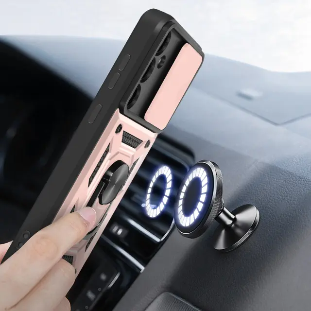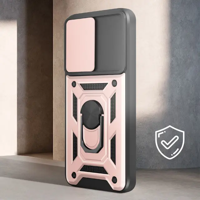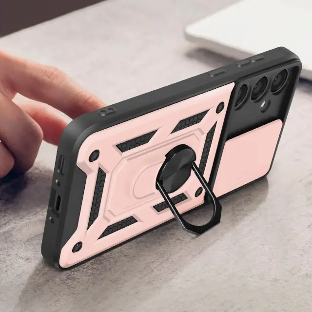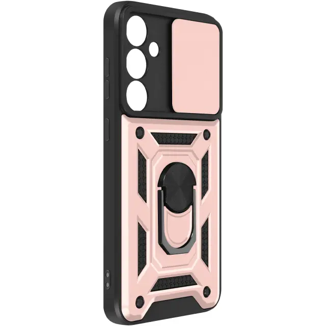 Ohišje s prstanom za Samsung Galaxy A35 5G Zaščita pred udarci s pokrovom kamere, Šampanjec roza