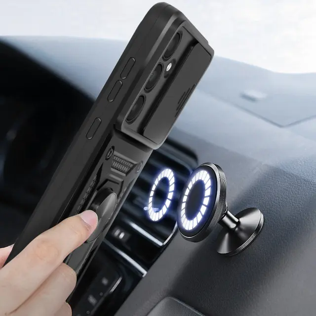 Ohišje s prstanom za Samsung Galaxy A55 5G Zaščita pred udarci z drsno zaščito kamere, Črna