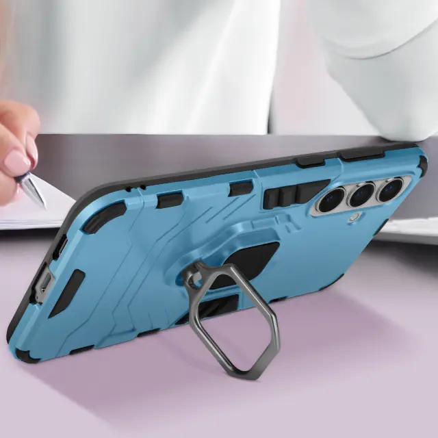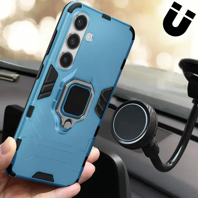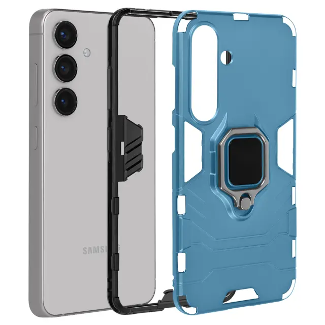 Ohišje s prstanom za Samsung Galaxy S24 Biomaterial, odporen na udarce, Svetlo modra