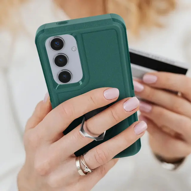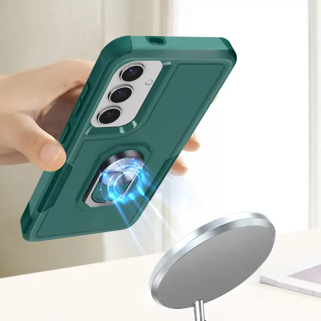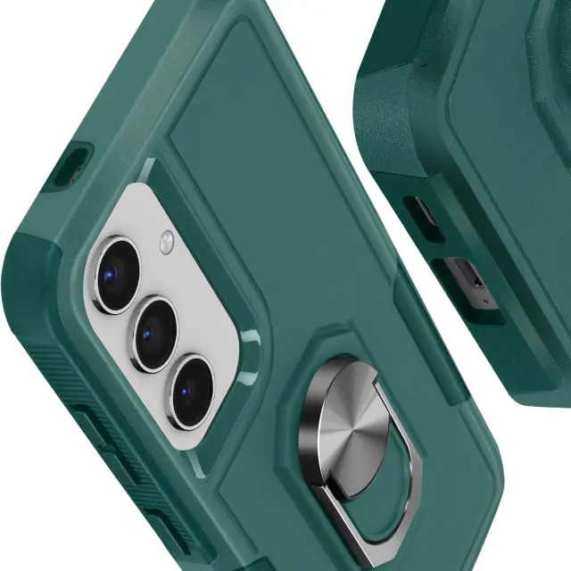 Ohišje s prstanom za Samsung Galaxy S24 Funkcija podpore proti udarcem, Temno zelena