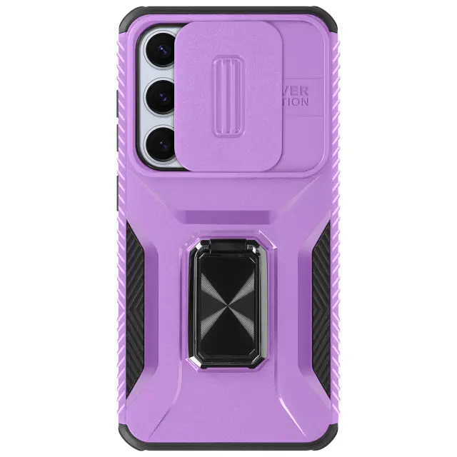 Ohišje s prstanom za Samsung Galaxy S24 Odporen na udarce zaščiten podporni obroč za kamero, Svetlo vijolična