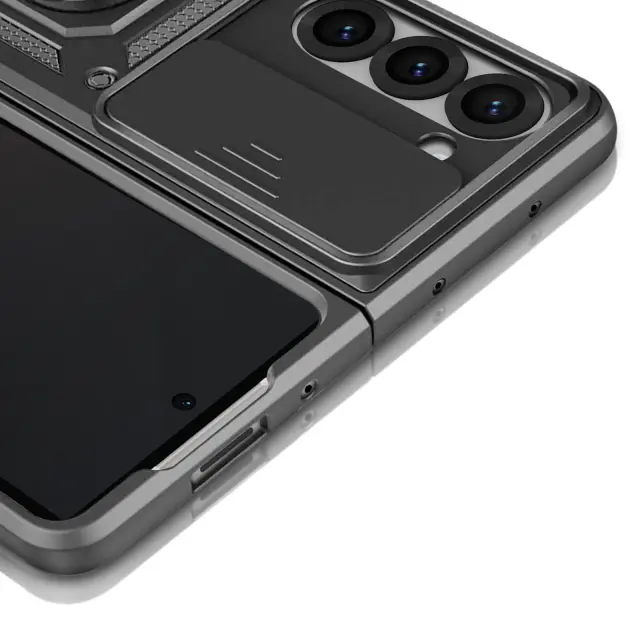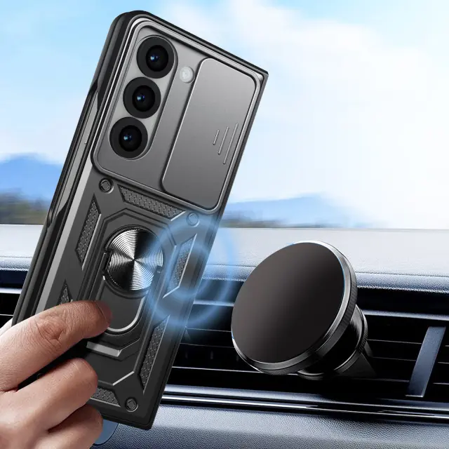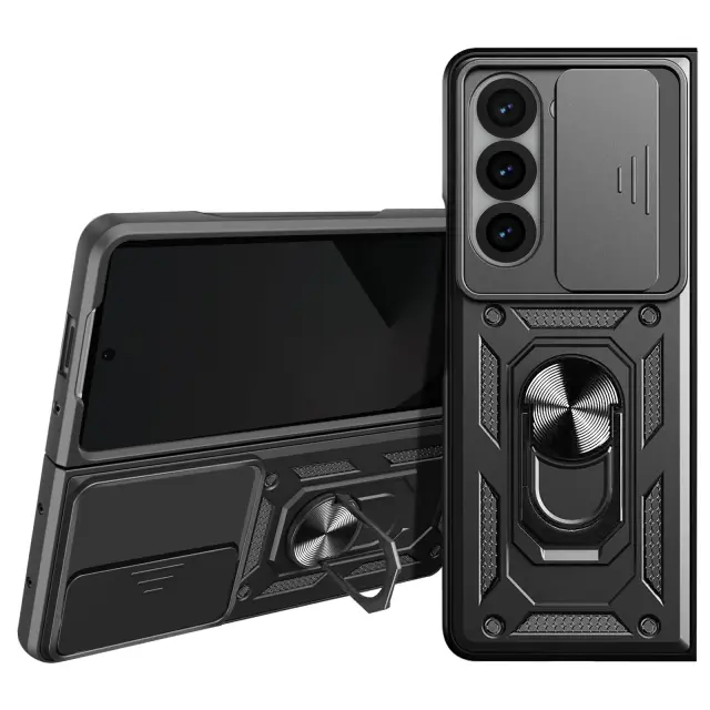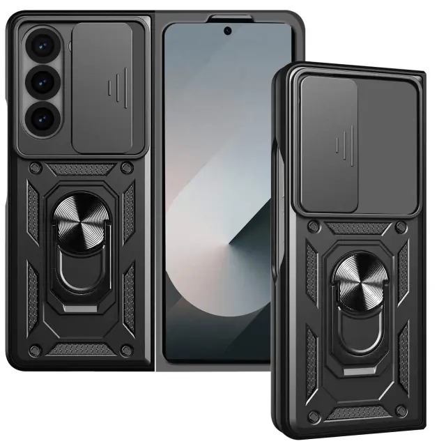 Ohišje s prstanom za Samsung Galaxy Z Fold 6 Zaščita pred udarci s pokrovom kamere, Črna