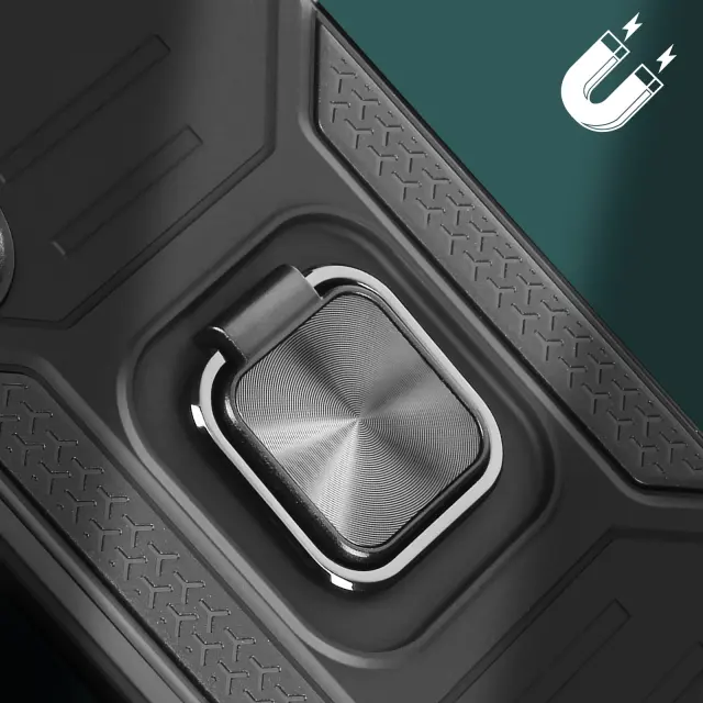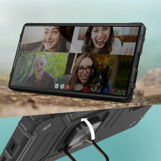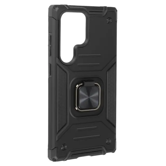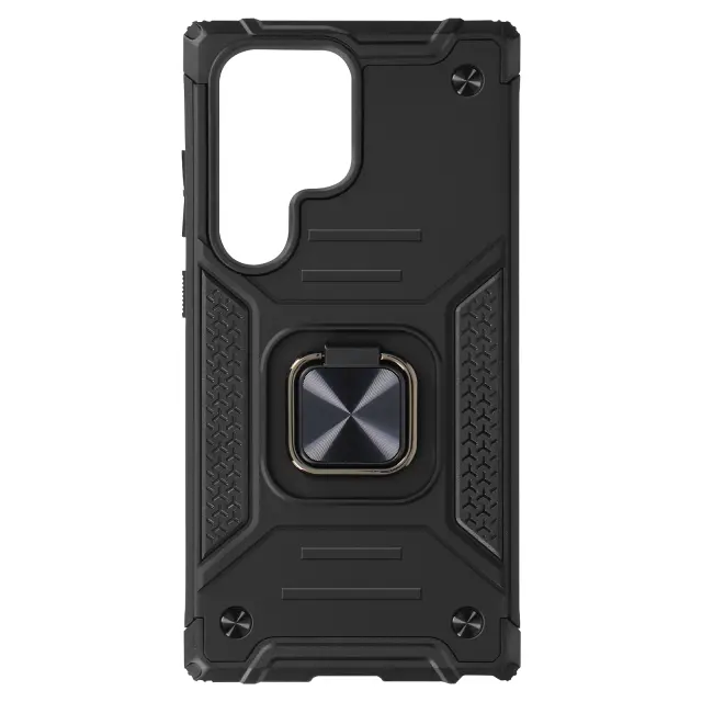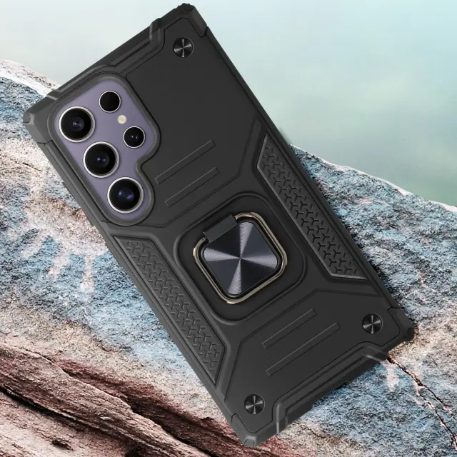 Ohišje s prstanom za Samsung S24 Ultra Ojačan bi-material Večnamenski obroč, Črna