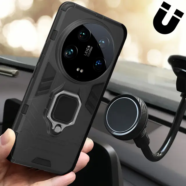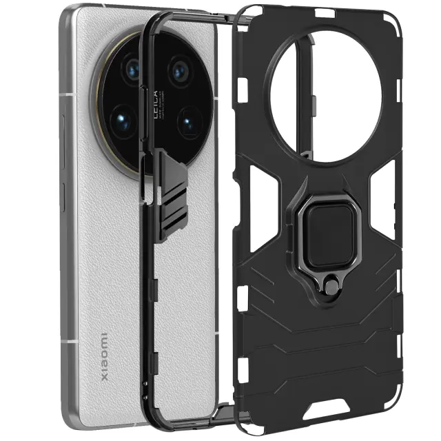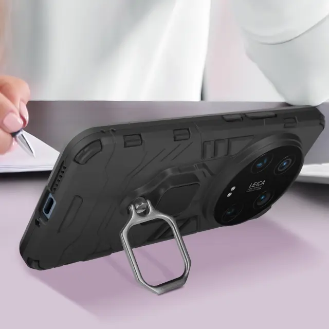 Ohišje s prstanom za Xiaomi 14 Ultra Odporna zaščita pred udarci iz biomaterialov, Črna