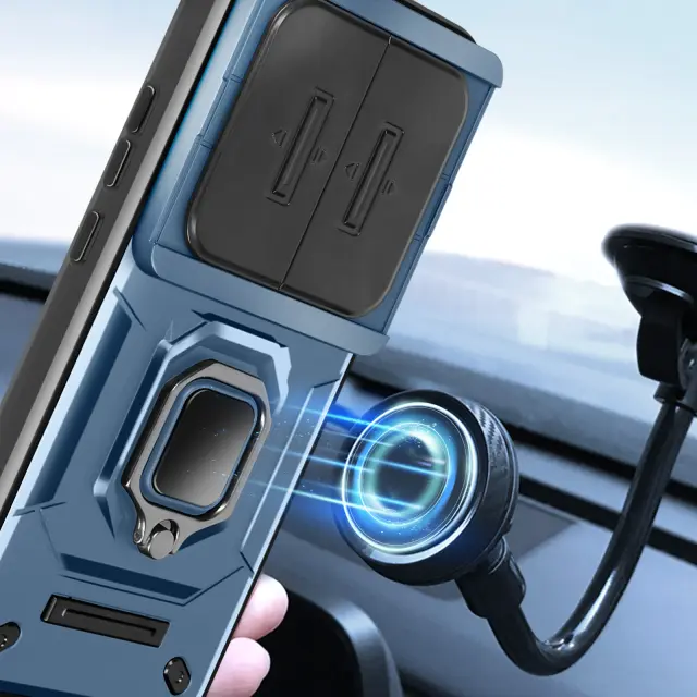 Ohišje s prstanom za Xiaomi 14 Ultra Zaščita pred udarci z drsnim pokrovom kamere, Modra noč