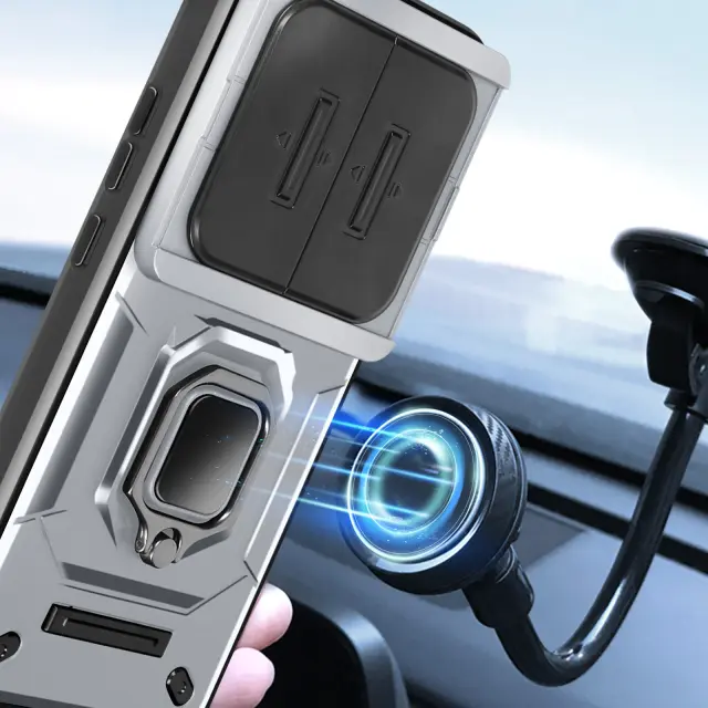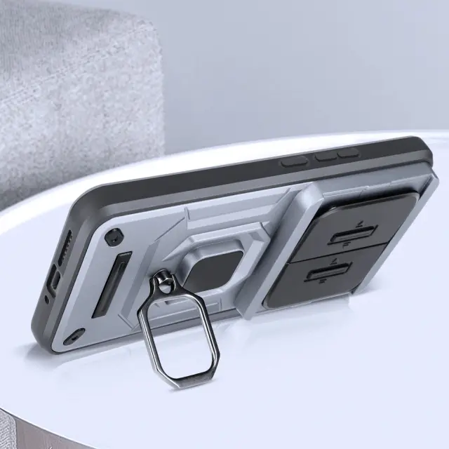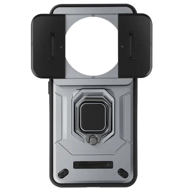 Ohišje s prstanom za Xiaomi 14 Ultra Zaščita pred udarci z drsnim pokrovom kamere, Siva