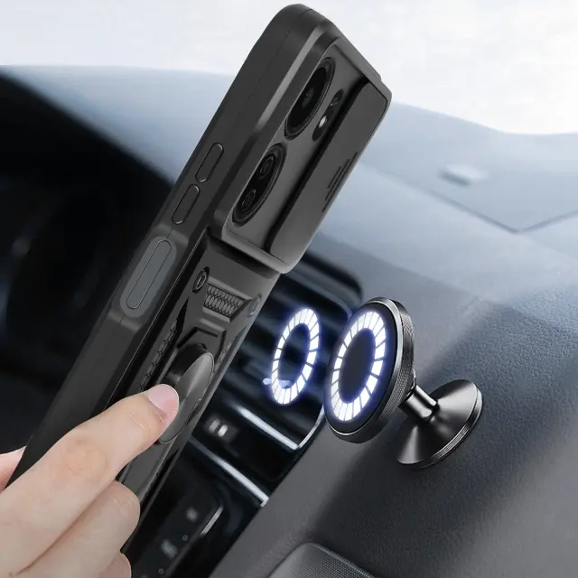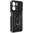 Ohišje s prstanom za Xiaomi Redmi 13C Zaščita pred udarci z drsno zaščito kamere, Črna