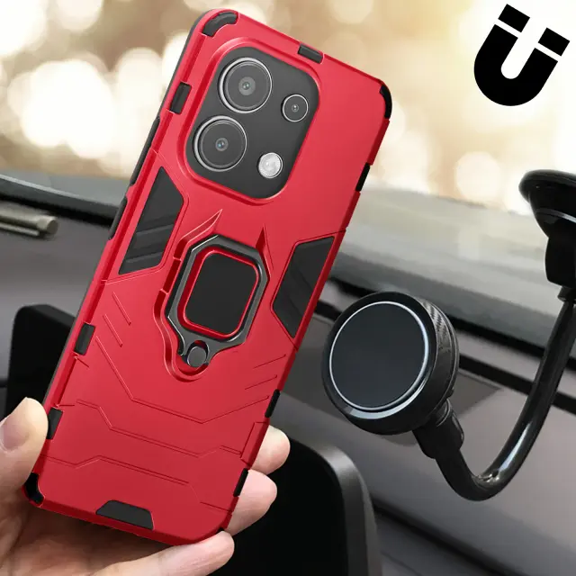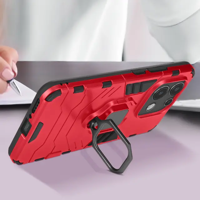 Ohišje s prstanom za Xiaomi Redmi Note 13 4G Odporna zaščita pred udarci iz biomaterialov, Rdeča