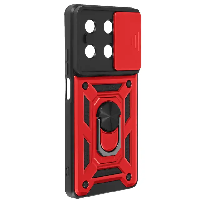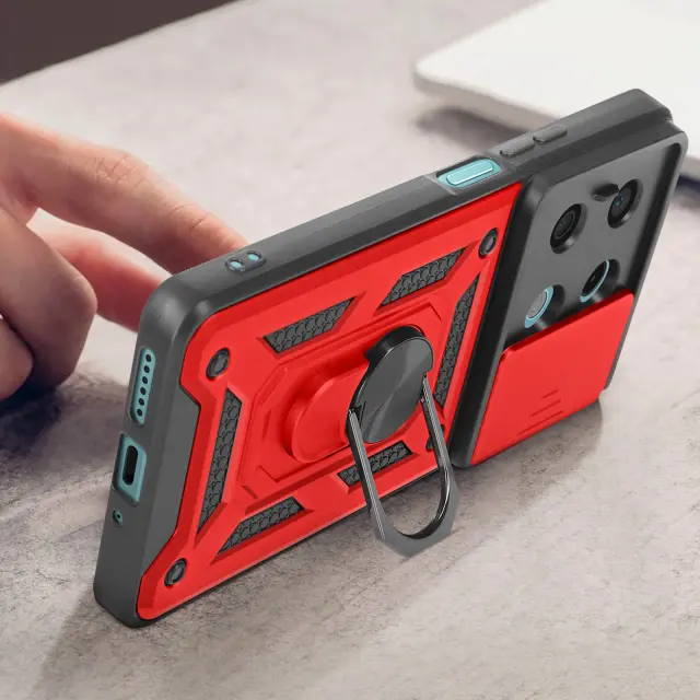 Ohišje s prstanom za Xiaomi Redmi Note 13 5G Zaščita pred udarci s pokrovom kamere, Rdeča