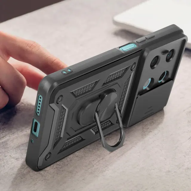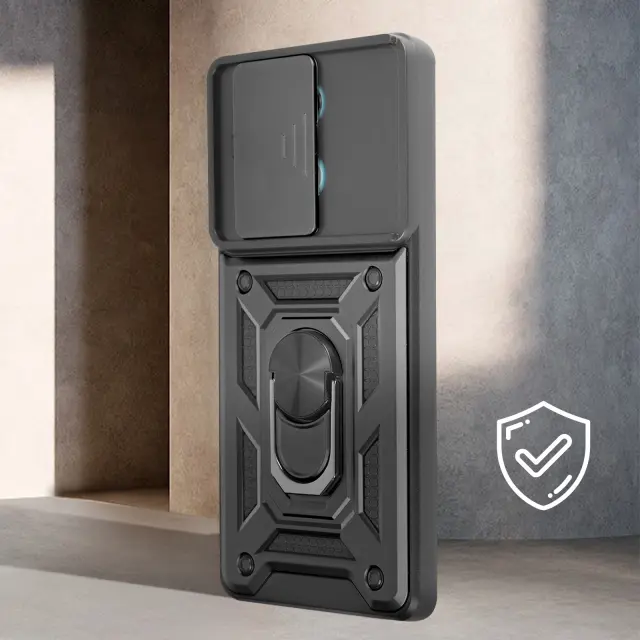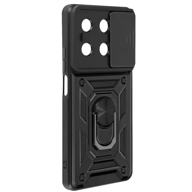 Ohišje s prstanom za Xiaomi Redmi Note 13 5G Zaščita pred udarci s pokrovom kamere, Črna
