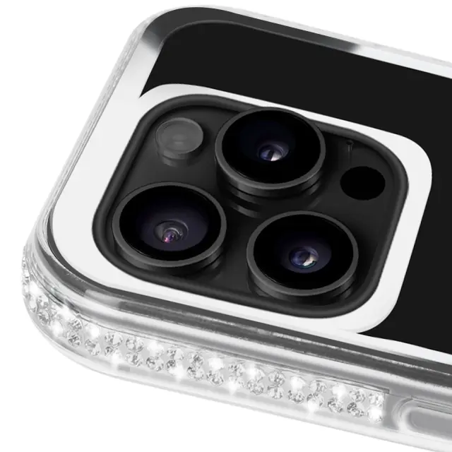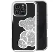 Ohišje z bleščicami za iPhone 16 Pro Max Vzorec medvedka s štrasom, Srebrna