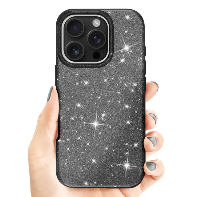 Ohišje z bleščicami za iPhone 16 Pro Odporen na udarce Glitter, Črna