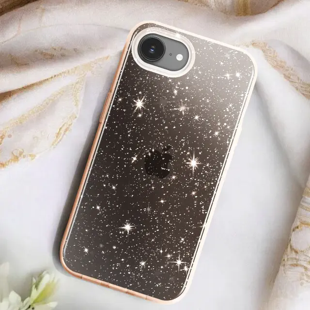Ohišje z bleščicami za iPhone 16e Hybride Design Glamour, Zlata