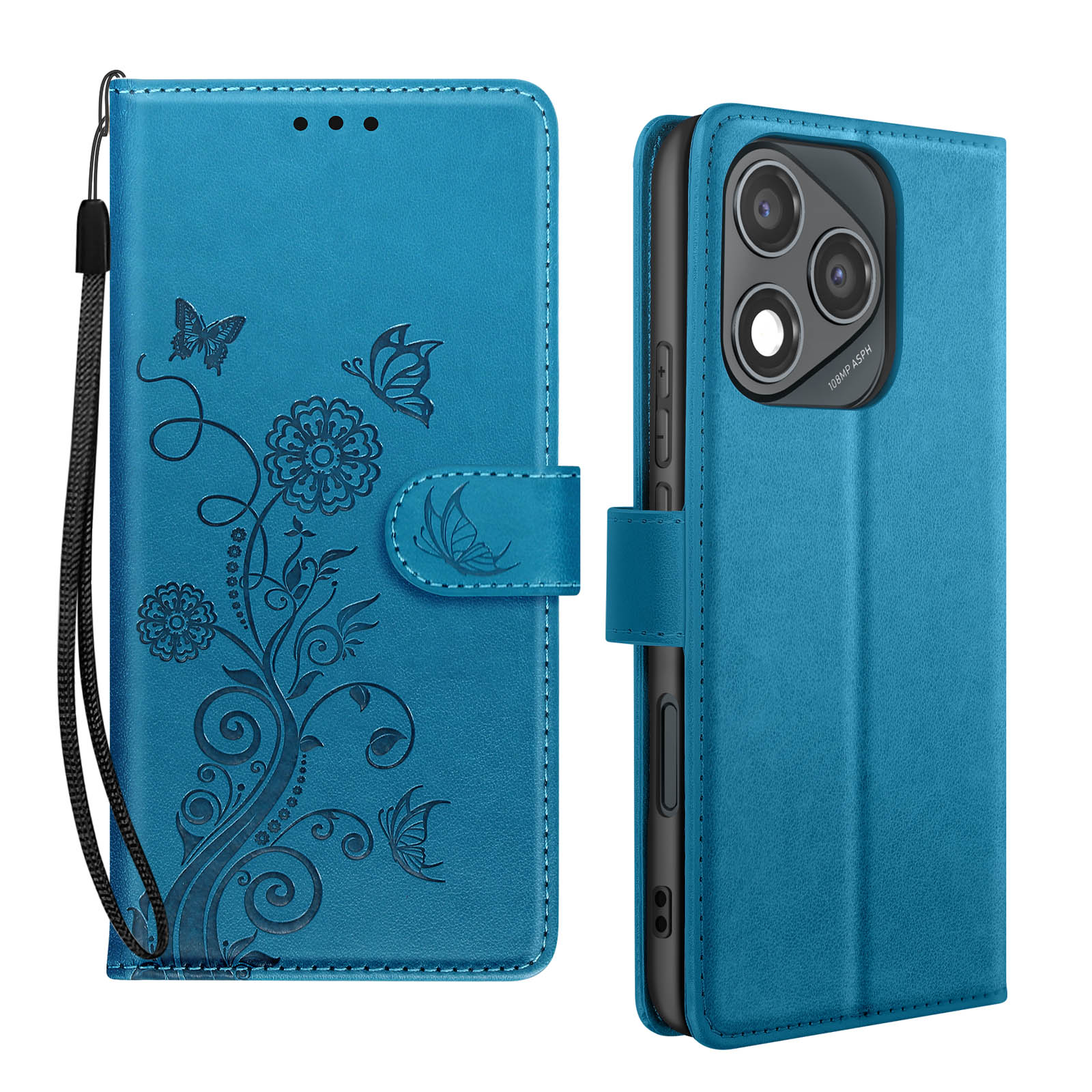 Ohišje z metuljčkom za denarnico Honor 400 Lite z vrvico, Modra