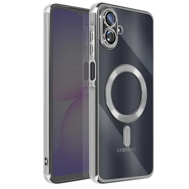 Ohišje za Galaxy A07, združljivo z MagSafe, s kromiranim robom, Srebrna