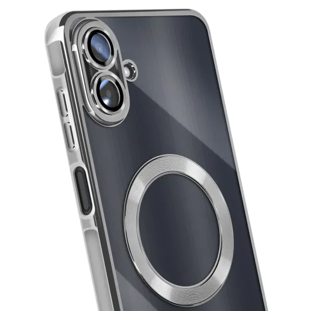 Združljiv z MagSafe z vgrajenim magnetnim obročem. Zanesljiva zaščita pred praskami, udarci in manjšimi padci. Elegantna kromirana obdaja za sodoben, vrhunski zaključek. Prozorna lupina, ki poudarja izvirno zasnovo pametnega telefona.