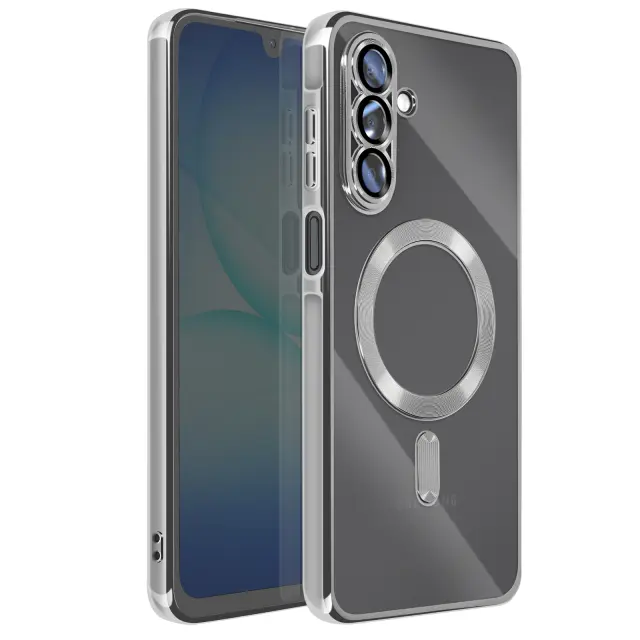 Ohišje za Galaxy A17, združljivo z MagSafe, s kromiranim robom, Srebrna