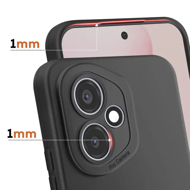 To ohišje za telefon Honor 400 je v celoti izdelano iz mehkega črnega silikona z gladkim zaključkom.. Prilagodljiv material absorbira lahke udarce in omogoča enostavno namestitev in odstranitev školjke.. Dvignjen okvir ščiti celoten modul kamere pred neposrednim stikom s površinami. Stranski gumbi so zaščiteni z integrirano prevleko, hkrati pa se odzivajo na pritisk..