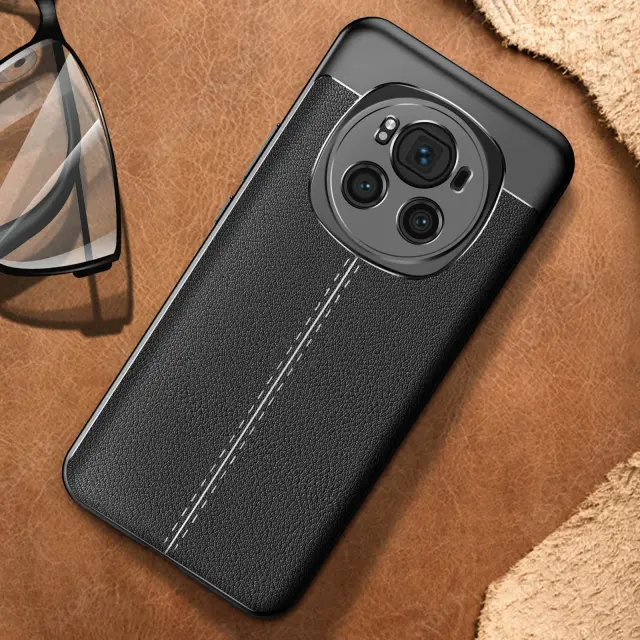 Ohišje za Honor Magic 6 Pro 5G Mehak z videzom usnja, Črna