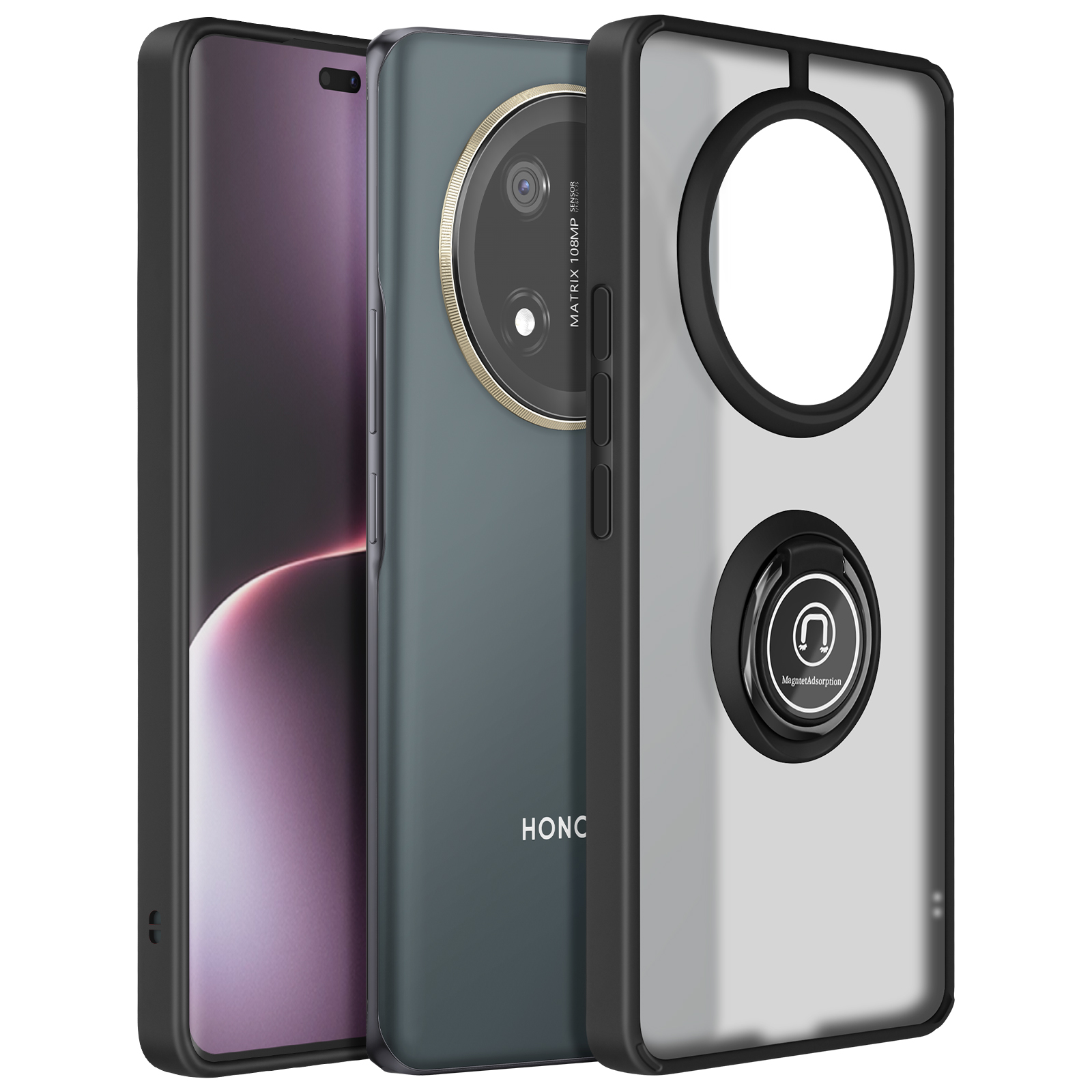 Ohišje za Honor Magic 7 Lite s kovinskim obročem za video podporo, Črna