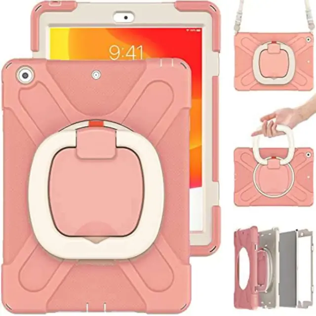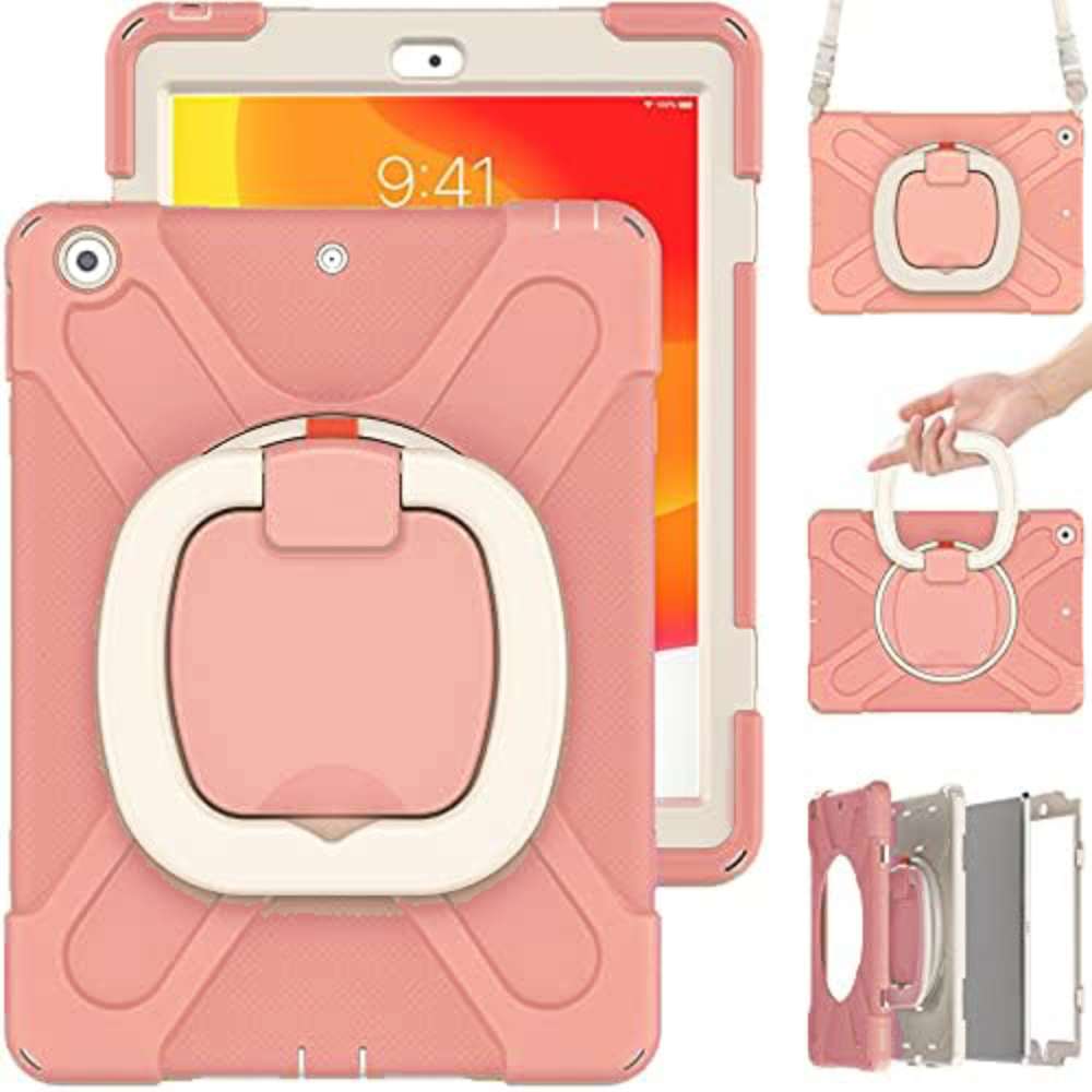 Ohišje za iPad 10,2" z vrtljivim stojalom in ramenskim pasom Roza