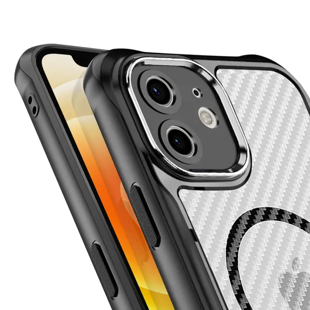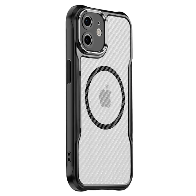 Ohišje za iPhone 12 MagSafe Carbon Back Odporen na udarce Okrepljeno, Črna