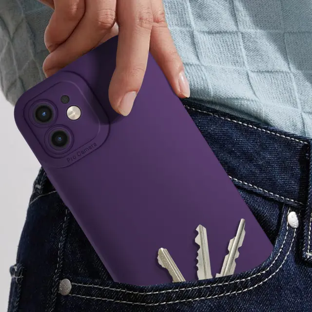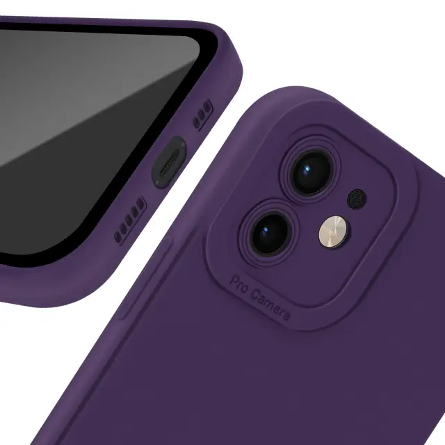 Ohišje za iPhone 12 Zaščitena kamera s podlogo, Temno vijolična