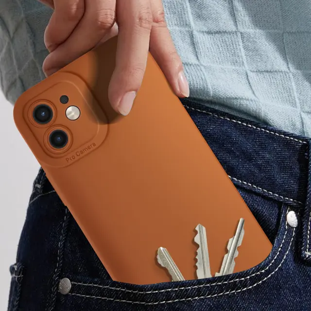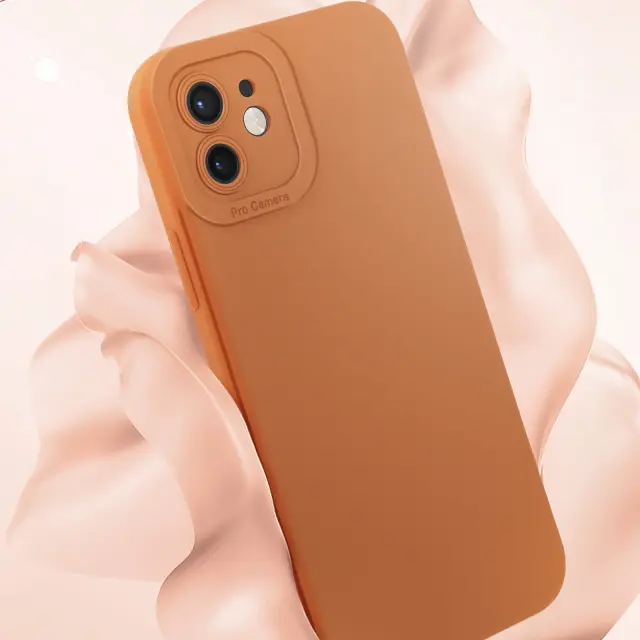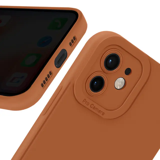 Ohišje za iPhone 12 Zaščitena kamera s podlogo, Svetlo rjava