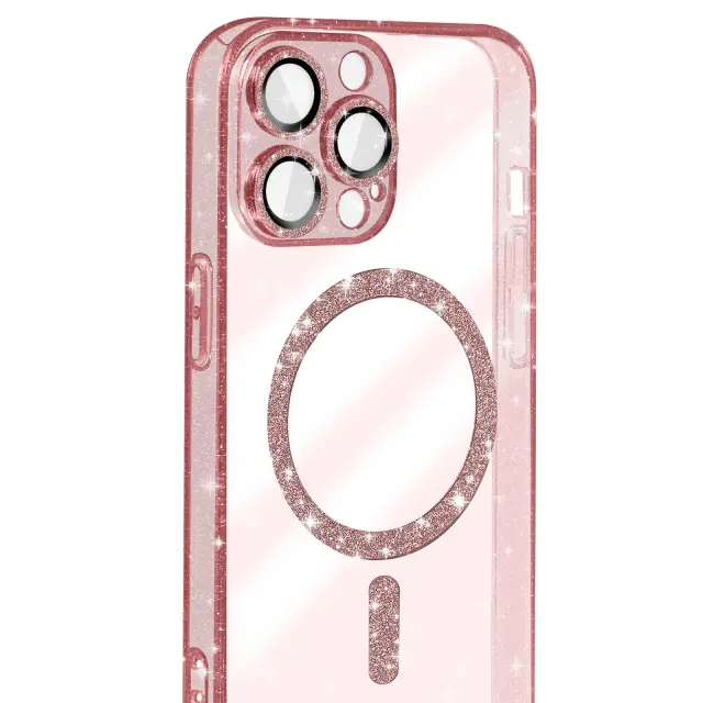Ohišje za iPhone 14 Pro MagSafe Glitter, Šampanjec roza