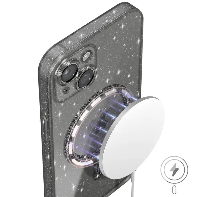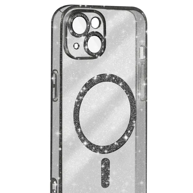 Ohišje za iPhone 15 MagSafe Glitter, Črna