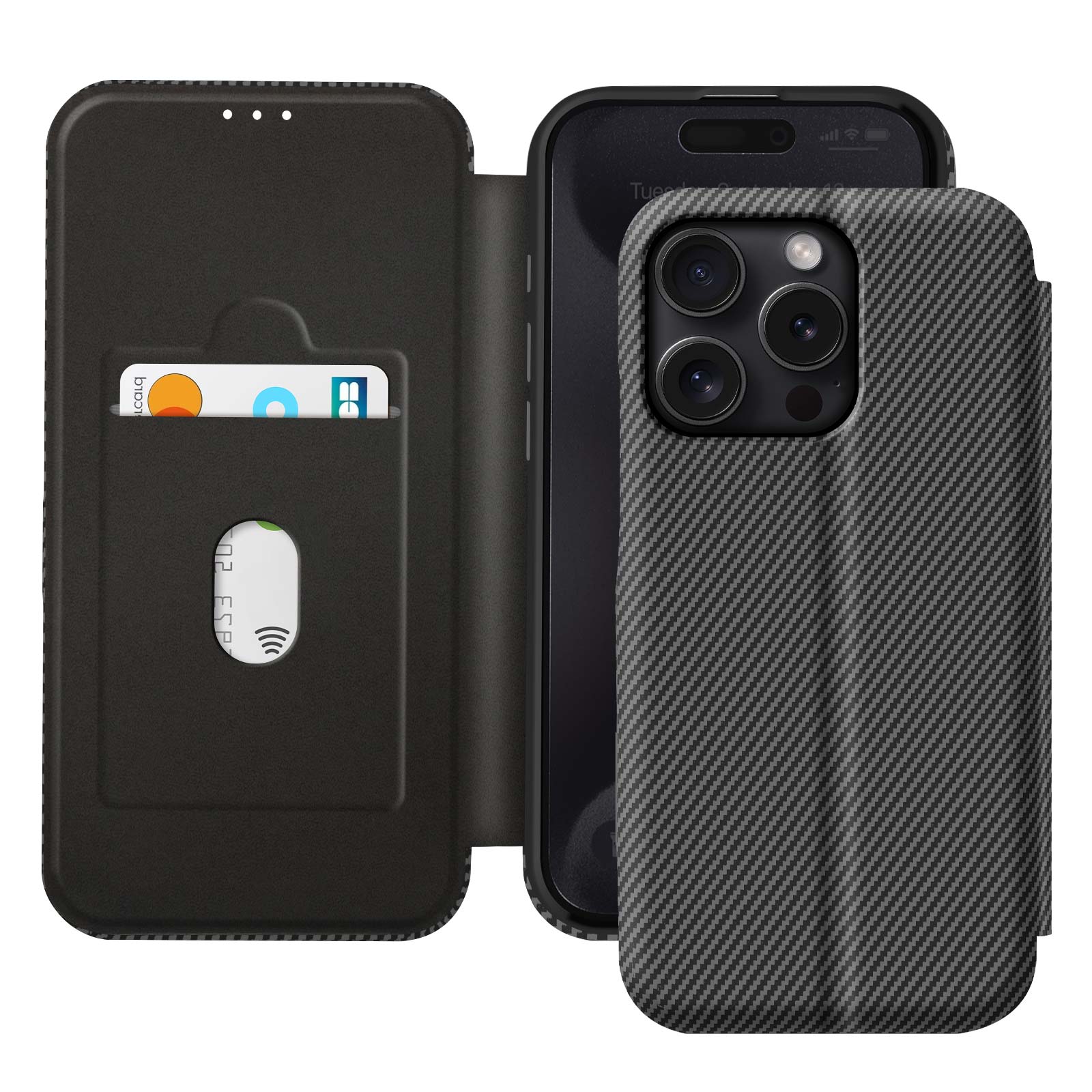 Ohišje za iPhone 15 Pro iz ogljikovih vlaken proti prepoznavanju radioaktivnih delcev in s podporo za videoposnetke, Črna