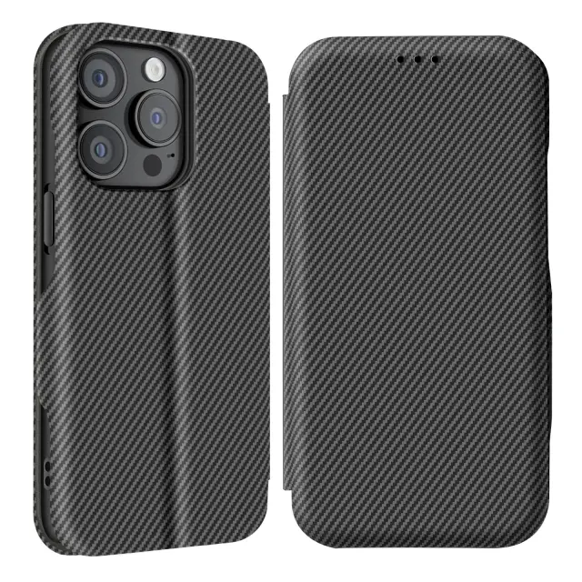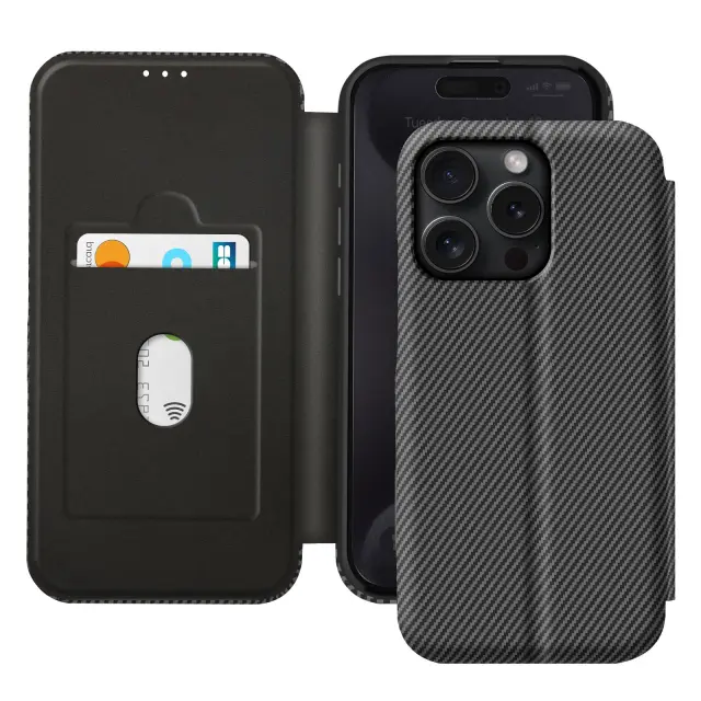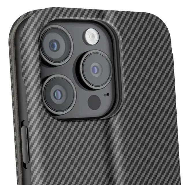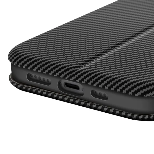 Ohišje za iPhone 15 Pro Max iz ogljikovih vlaken s podporo za videoposnetke in zaščito pred RFID, Črna