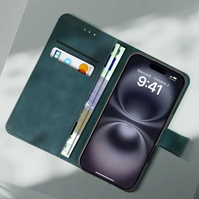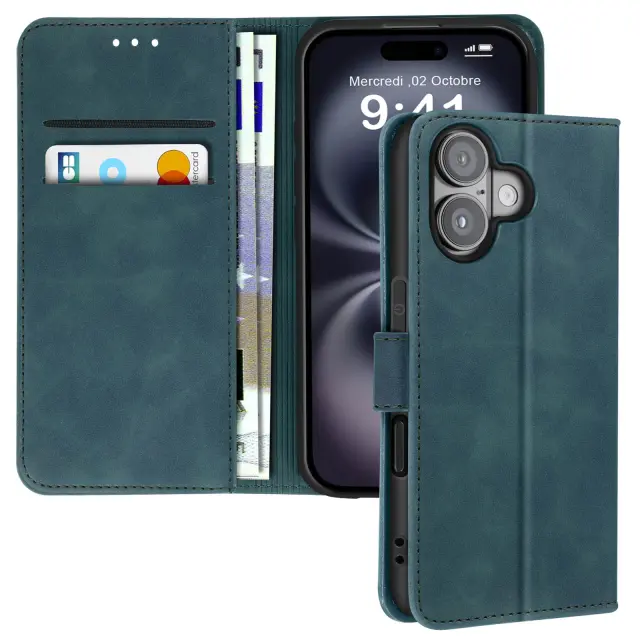 Ohišje za iPhone 16 Clap Wallet Video podpora, Modro raca