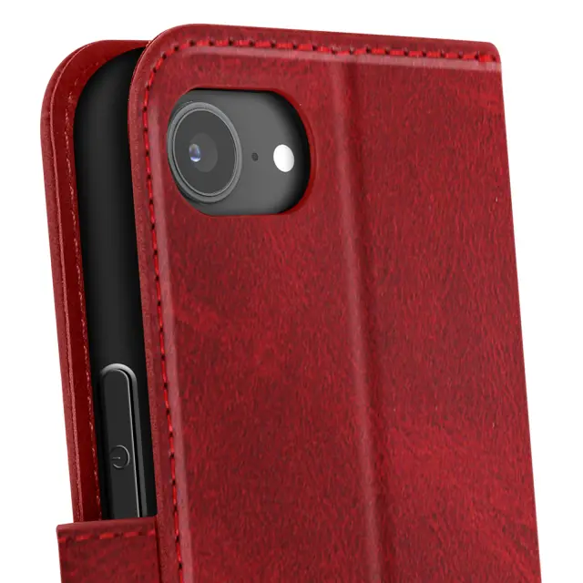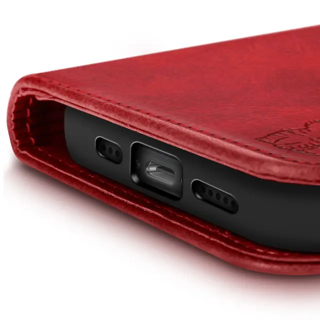 Ohišje za iPhone 16 Happy Cat Design Denarnica in stojalo, Rdeča
