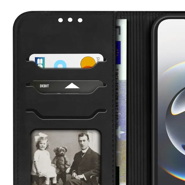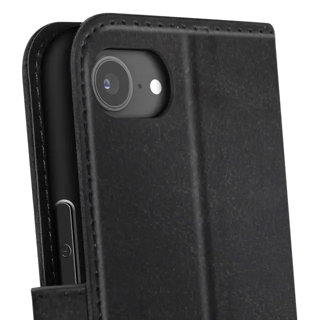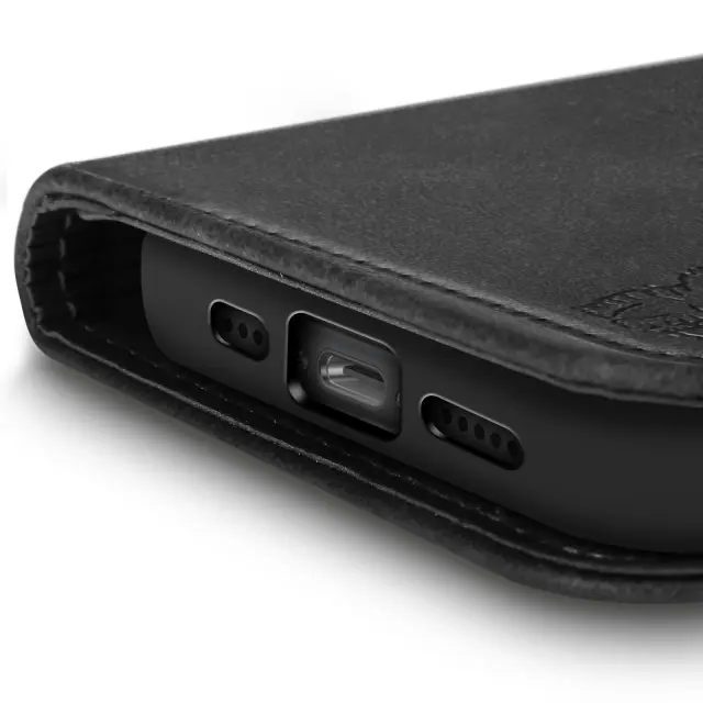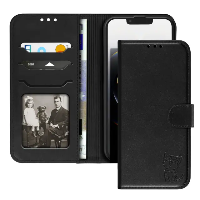 Ohišje za iPhone 16 Happy Cat oblikovno denarnico in stojalo, Črna