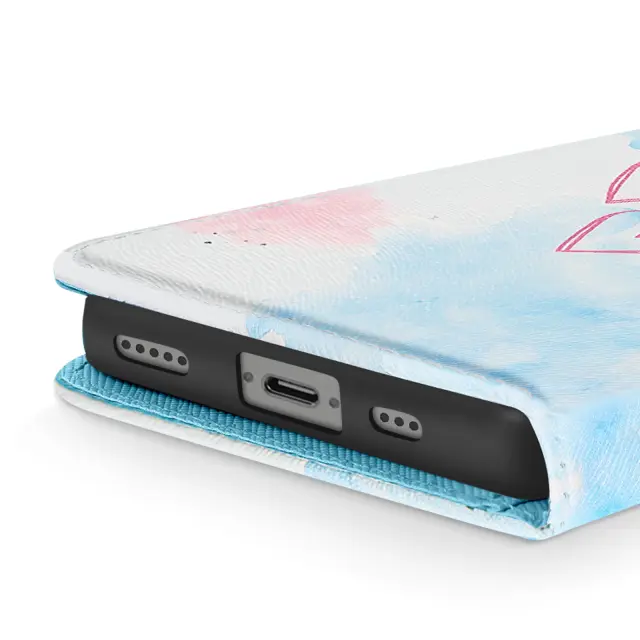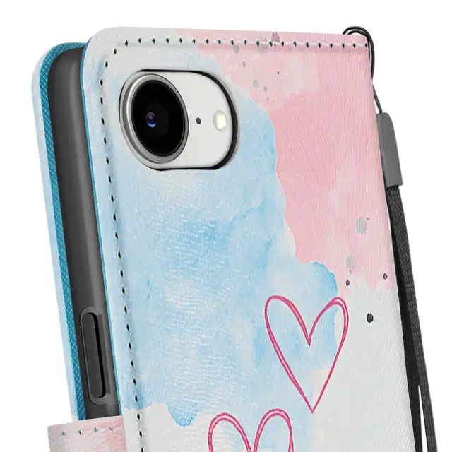 Ohišje za iPhone 16 Heart s trakom in držalom za kartice, Modro / Roza