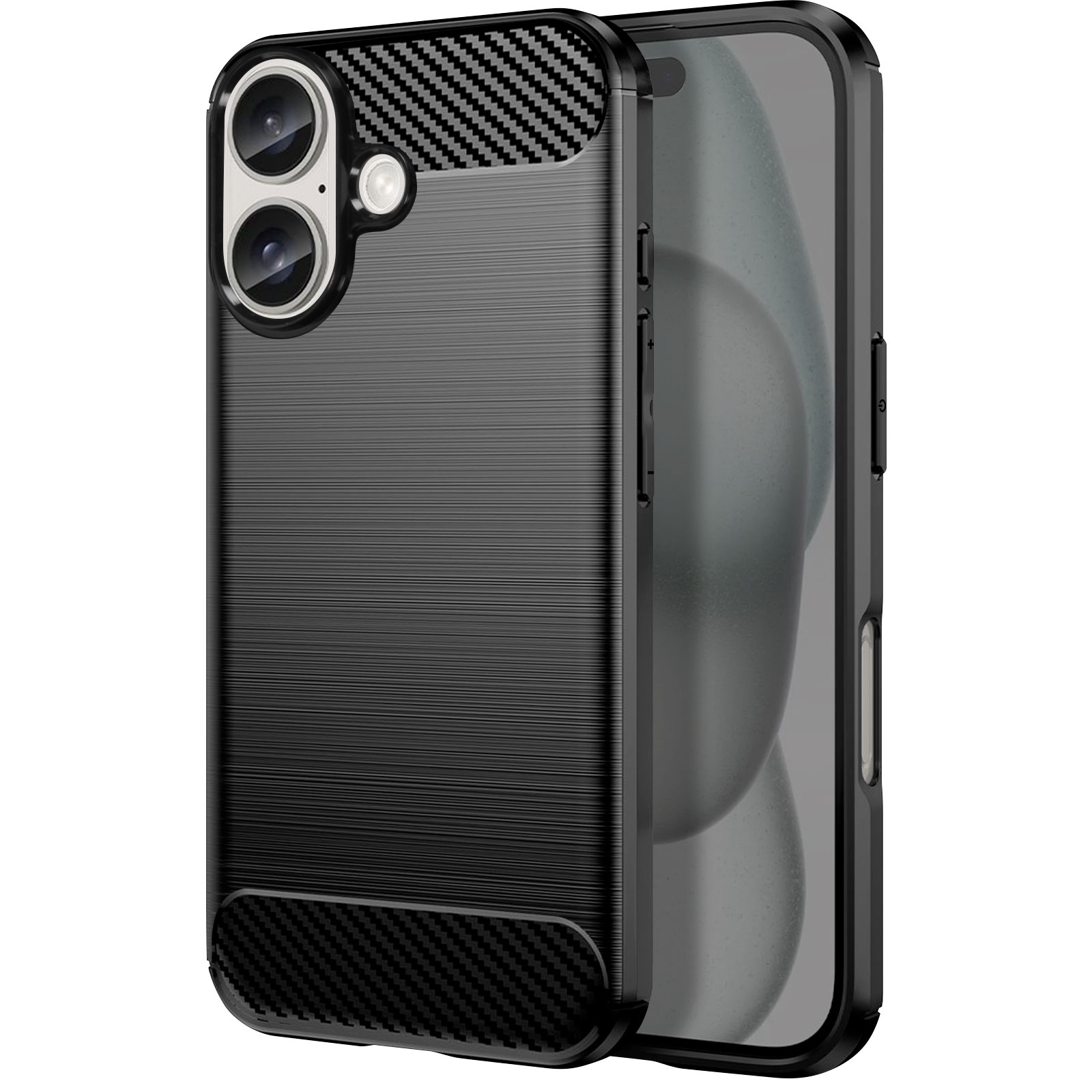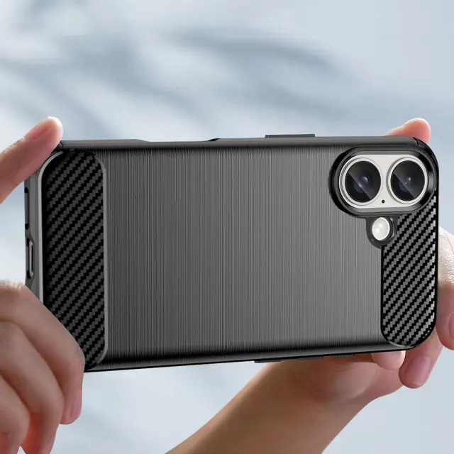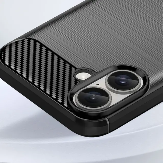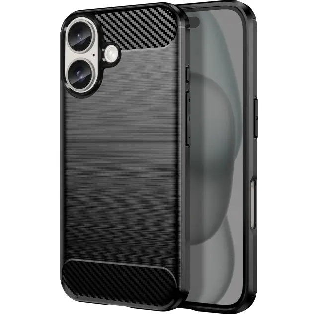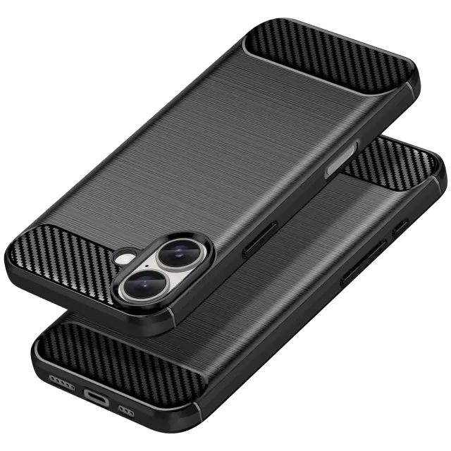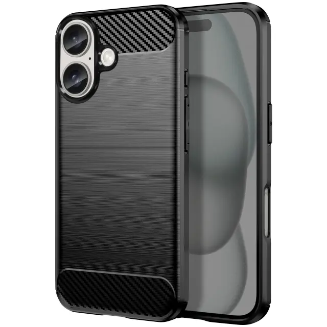 Ohišje za iPhone 16 Odporno na udarce Brushed Carbon Design, Črna