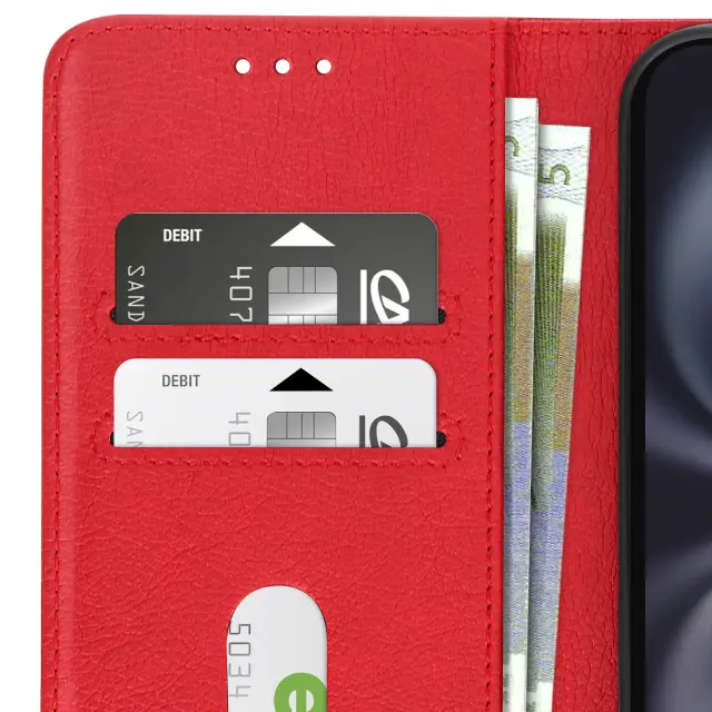 Ohišje za iPhone 16 Plus Clamshell denarnica in držalo za videoposnetek, Rdeča