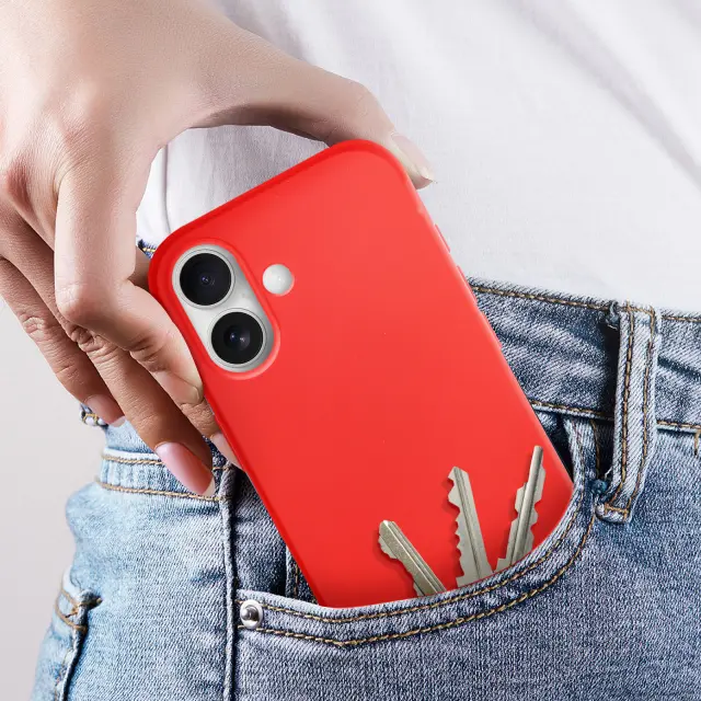Ohišje za iPhone 16 Plus Poltrdno Soft-touch proti praskam, Rdeča