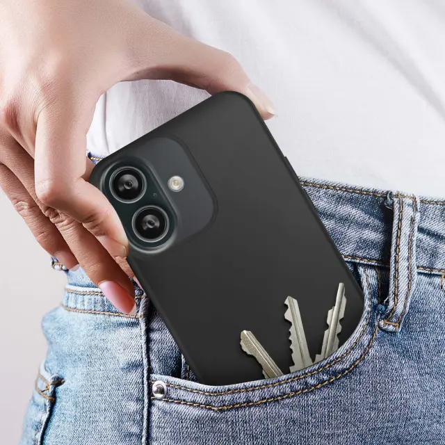 Ohišje za iPhone 16 Poltrdno Soft-touch proti odtisom, Črna