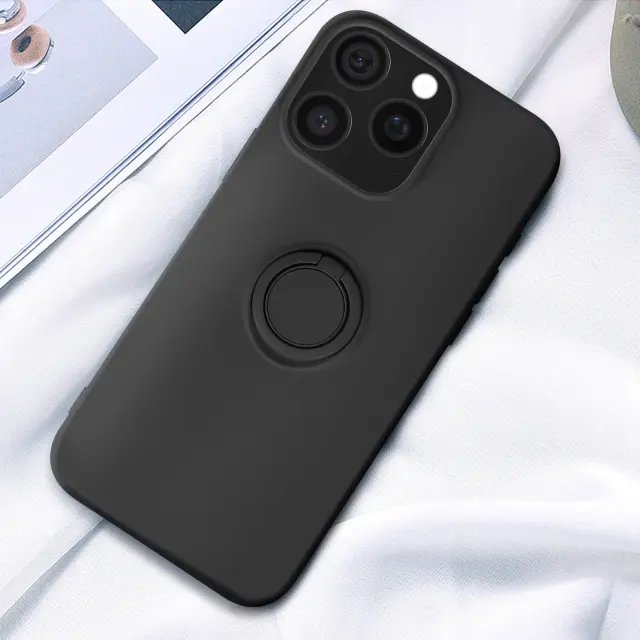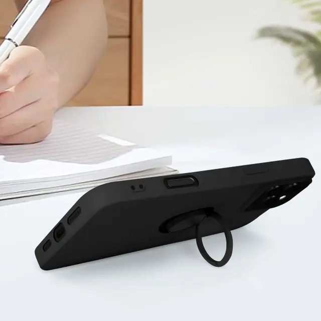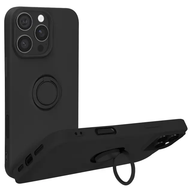 Ohišje za iPhone 16 Pro Bague Support Silikonsko prilagodljivo, Črna