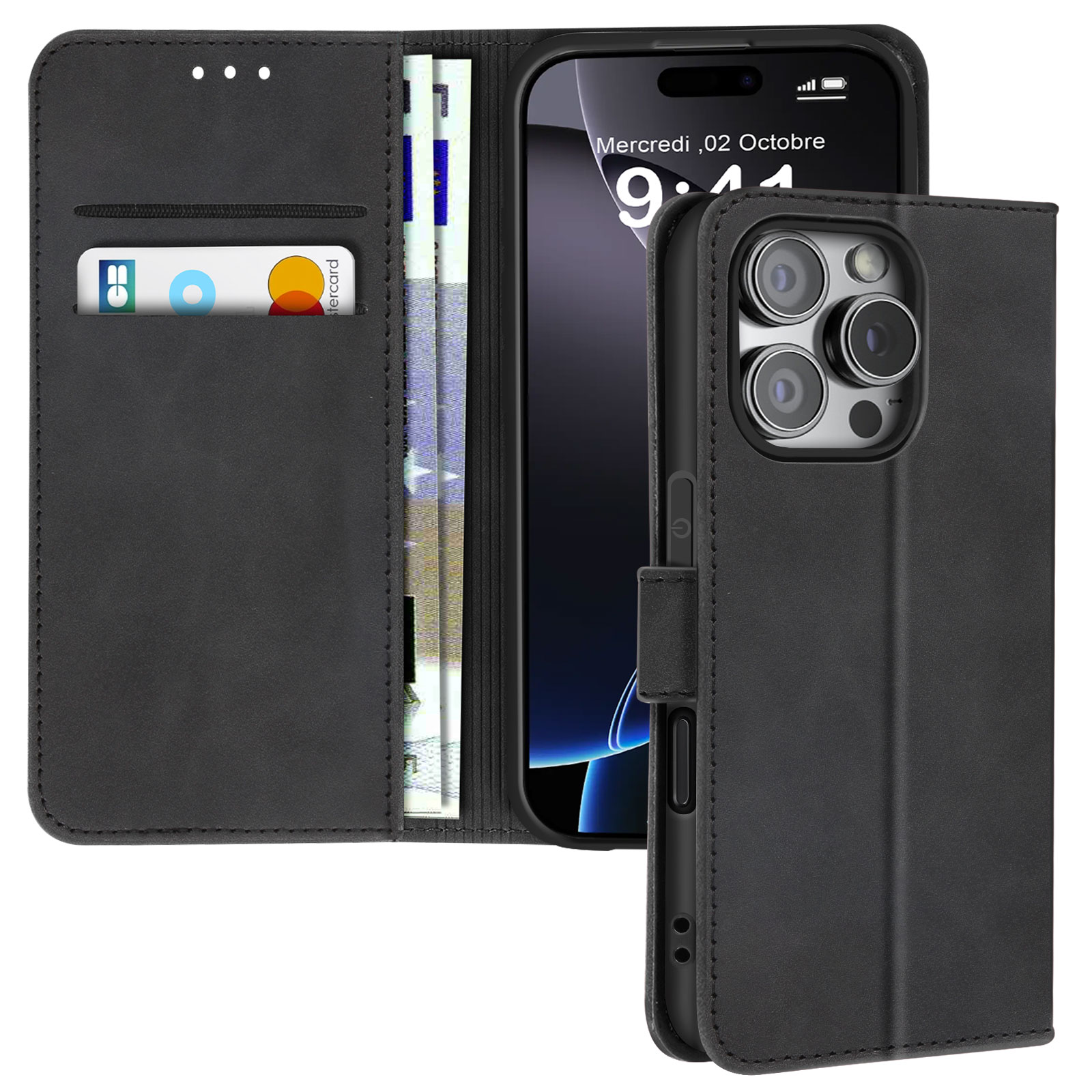 Ohišje za iPhone 16 Pro Clap Wallet Video podpora, Črna